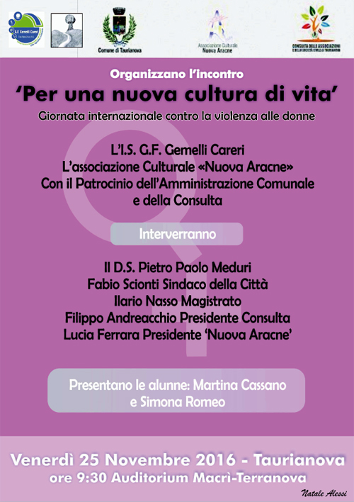 - Venerdì 25 Novembre 2016. Ore 9.30 Auditorium Macri-Terranova -Interverranno: